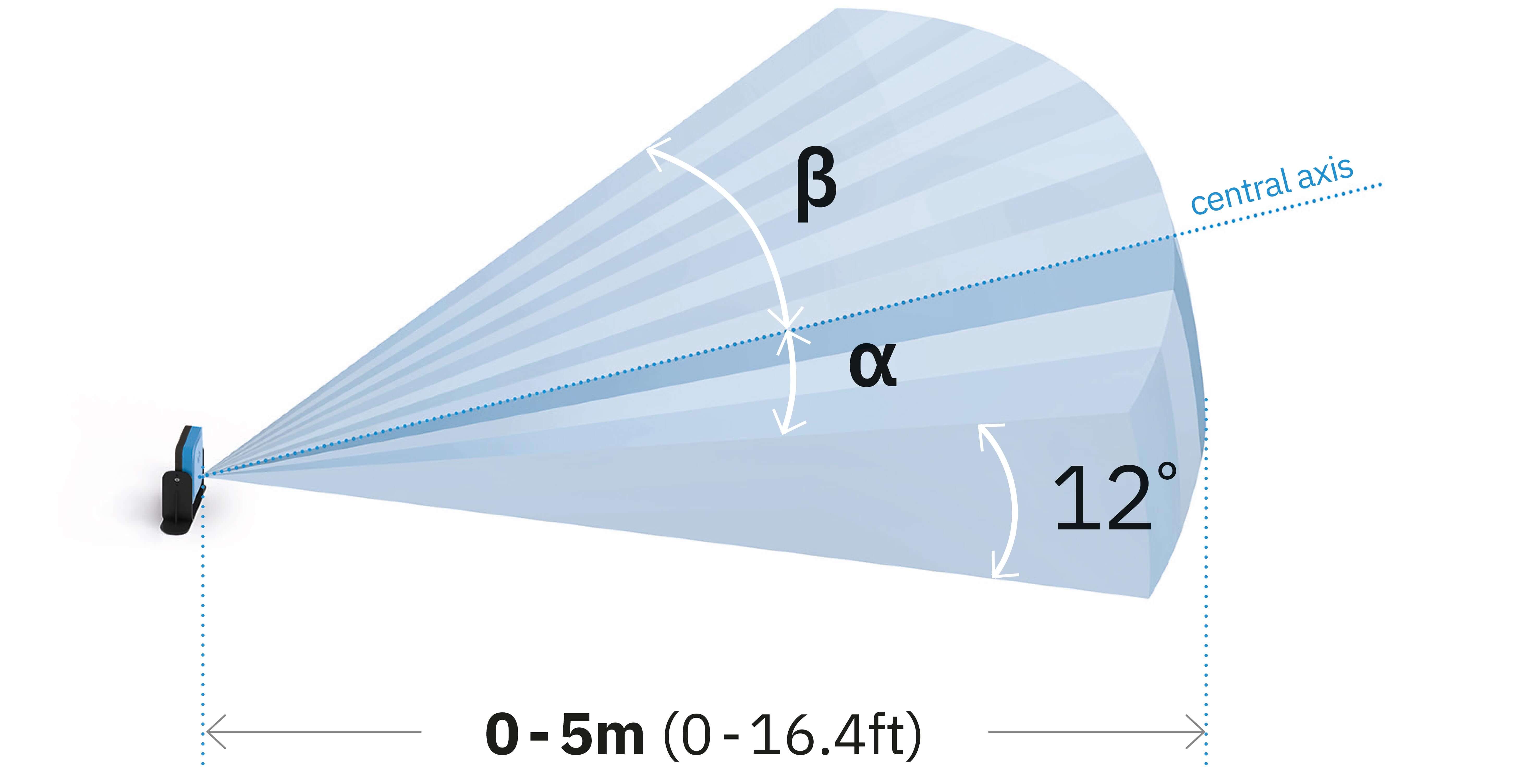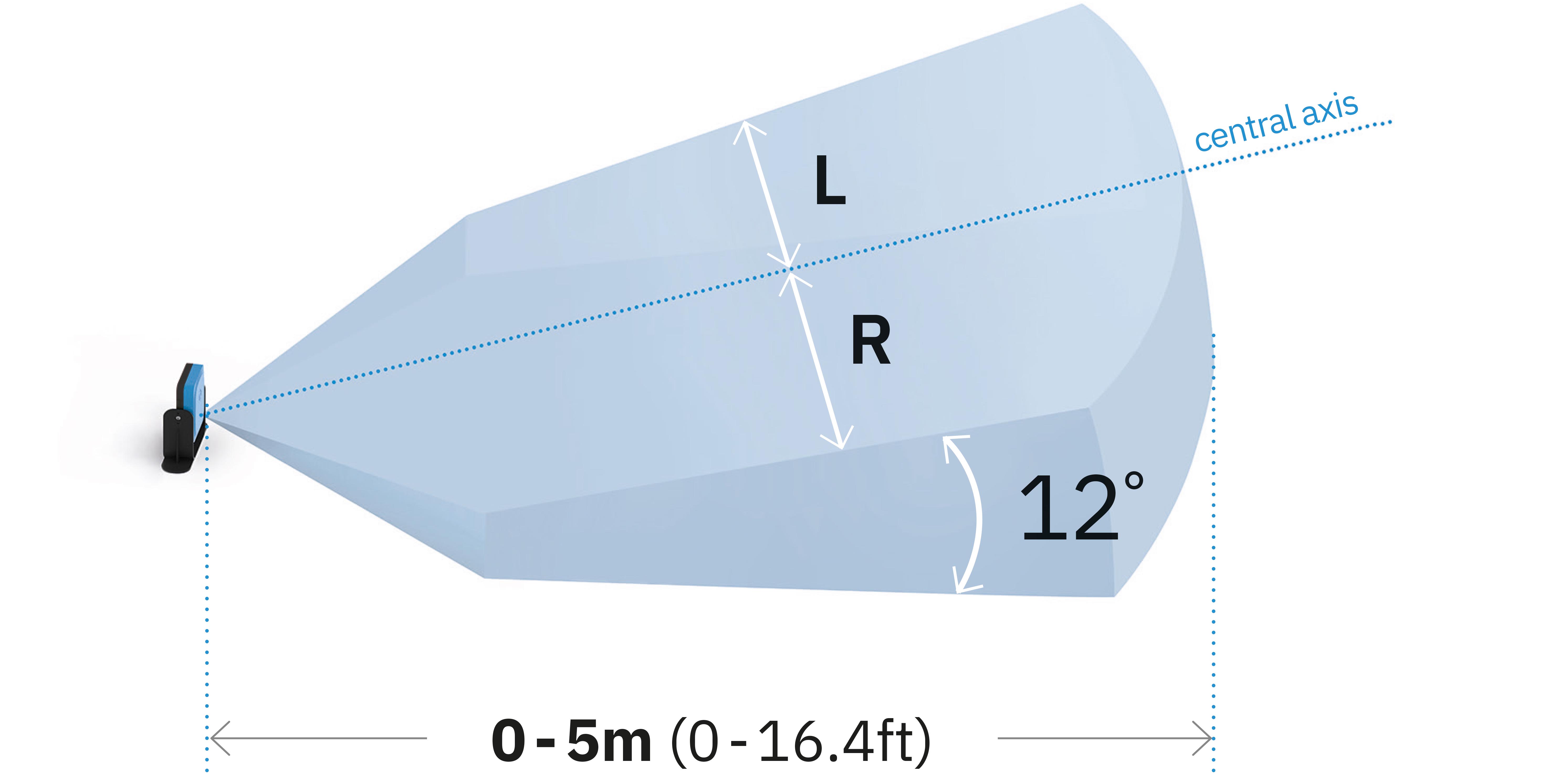 FOV Corridoio dotato di una copertura angolare verticale di 12°, ideale per ambienti industriali con spazi stretti e limitati.